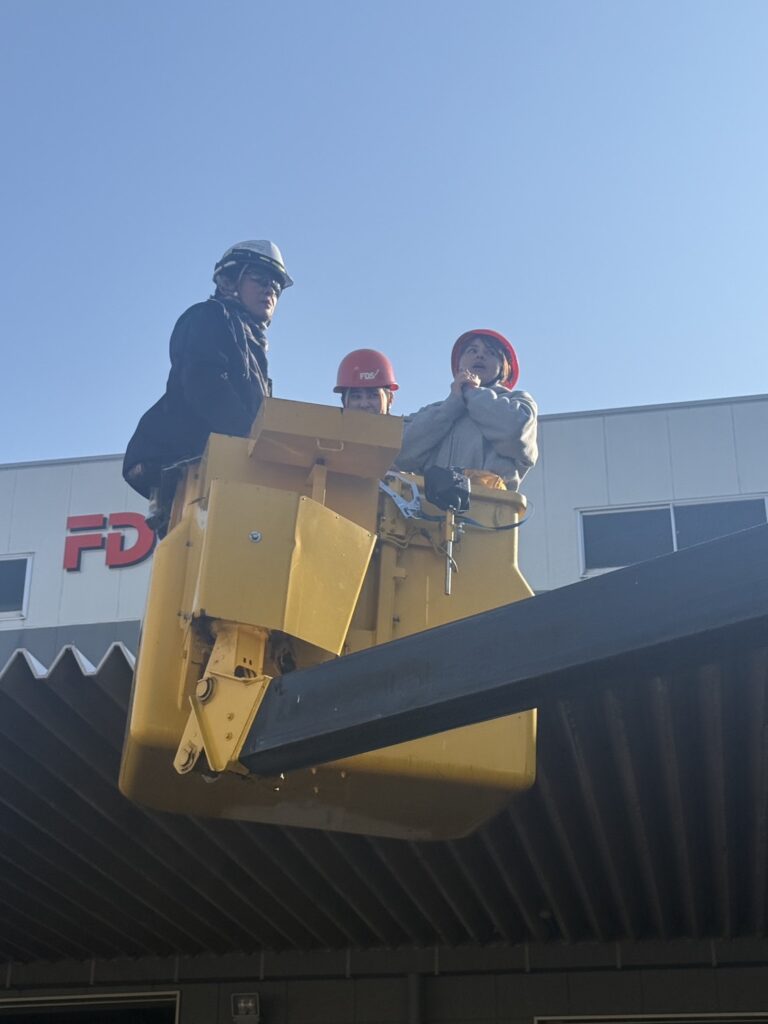 電気がつく仕組みの説明や重機の使い方の見学を行い、子どもたちは目を輝かせながら興味津々の様子でした。